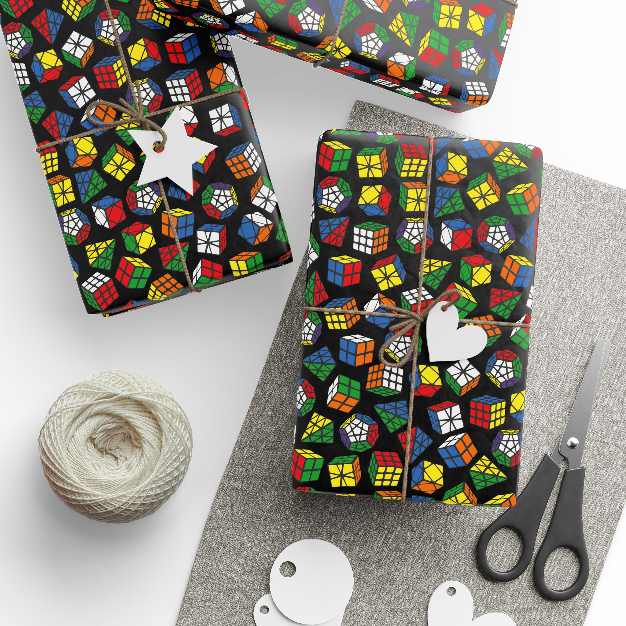 This Pyraminx, Megaminx, Skewb and Square-1 Rubik’s Cube Gift Wrap with our Pyraminx, Megaminx, Skewb and Square-1 design wrapping paper comes with a glossy finish and feature a high-definition print. Paper comes neatly rolled up.